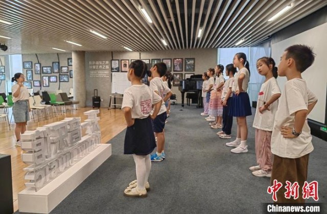 寧波圖書館的“天一童藝”公益項(xiàng)目現(xiàn)場(chǎng),孩子們跟著老師學(xué)唱由《千字文》改編的歌曲?!≈行戮W(wǎng)記者 應(yīng)妮 攝