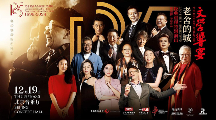 12月19日,一場(chǎng)獨(dú)特的文學(xué)“響”宴在北京音樂廳舉行。這是一期以老舍為文化主題的詩(shī)文雅集,一個(gè)關(guān)于歷史文化名城北京的年度盛典。在總導(dǎo)演陳薪伊的引領(lǐng)下,濮存昕、斯琴高娃、史可、陶虹、春妮、季冠霖、李立宏、任志宏、徐濤、大山、李洪濤、小柯、張樹榮等眾多著名藝術(shù)家,共同誦讀老舍先生的經(jīng)典名作,向這位偉大的人民藝術(shù)家致敬。