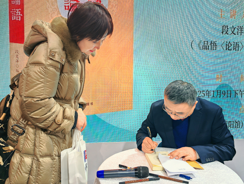 《品悟〈論語〉》一書作者段文洋在活動現(xiàn)場為讀者簽名