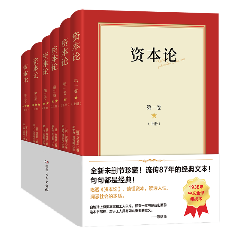 湖南人民出版社出版的《資本論》選用的是由郭大力和王亞南兩位翻譯大家傾力完成,于1938年出版的譯本。
