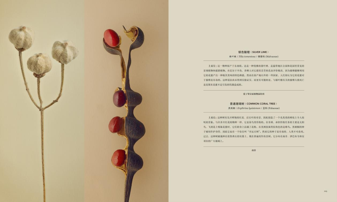 隨后,植物園耗時6個月,從3500份標本中精心篩選出100種植物果實與種子。列文·比斯將這些攝影對象放大至80倍,捕捉到植物表面豐富多樣的細節(jié),照片的精細程度超乎想象。每張圖片還配有一段簡潔的科普文字,不僅反映了100多年來植物的采集狀況,展示了種子的傳播方式,還介紹了人類對植物材料的利用方法。