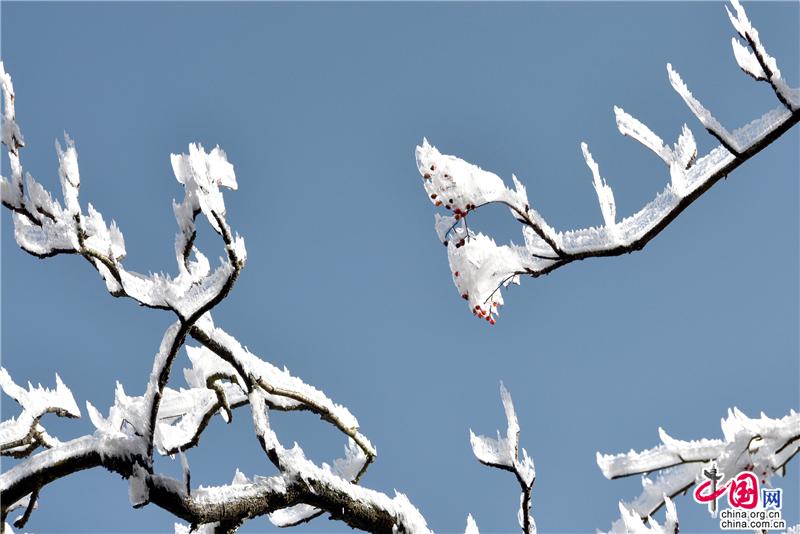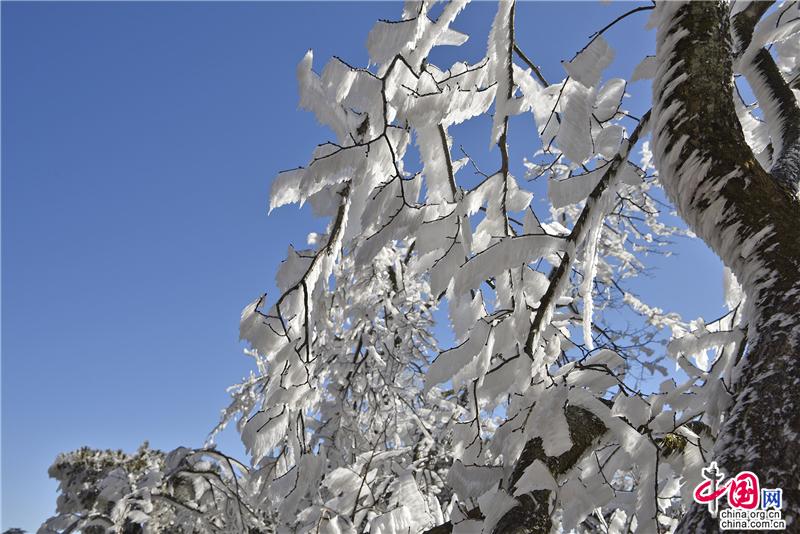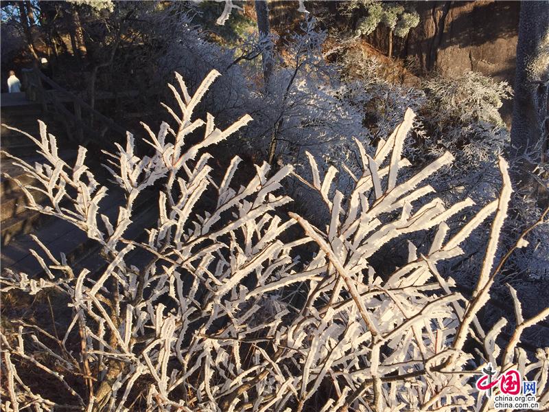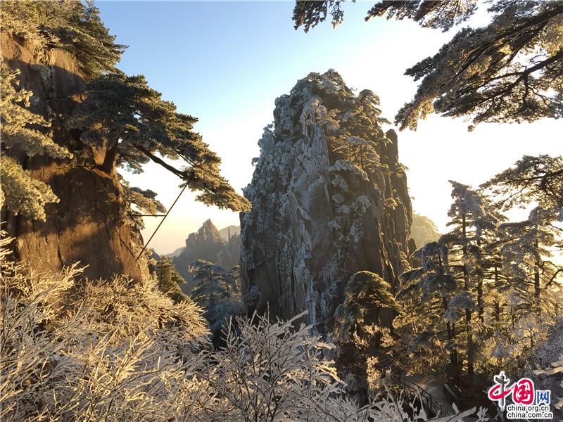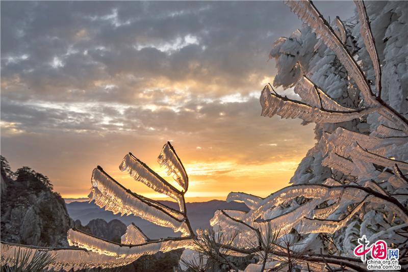 2019年最后一天黃山風(fēng)景區(qū),出現(xiàn)壯觀的日出、霧凇、云海景觀,到處銀妝素裹,冰雕玉砌,“一夜寒風(fēng)起,萬(wàn)樹(shù)銀花開(kāi)”,置身其間,仿佛進(jìn)入撲朔迷離的童話(huà)世界,給來(lái)山的游客帶來(lái)意外的驚喜。