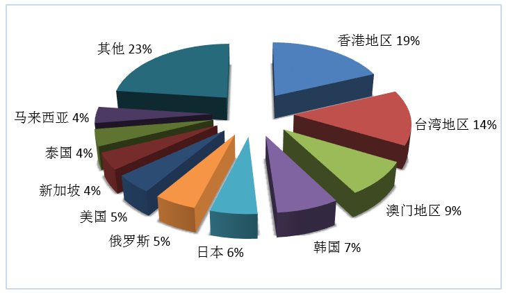 圖2:第三季度入境旅游接待人次排名前十位的客源地國家或地區(qū)