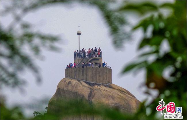 說到自然風(fēng)光,便不能不提日光巖——這島上的最高峰。日光巖別名“晃巖”,相傳1641年,鄭成功來到此地,見此地風(fēng)景勝過吉林日光山,便把“晃”字拆開,稱之為“日光巖”。要登臨此巖,一窺日光,便要辛勞走一段山路。其間渾圓的巨石層出不窮,蒼郁的古樹隨處可見,更有閩南大厝、名人題字與這些自然風(fēng)景相得益彰。于是游人往往在心曠神怡中,路過“九夏生寒”“鷺江龍窟”,經(jīng)由“閩海雄風(fēng)”“古避暑洞”,不知不覺間,來到巖頂?shù)钠脚_(tái)。立定此處,憑欄遠(yuǎn)望,只見輕靈的云天近在咫尺,島上的屋宇盡收眼簾——別提有多么愜意!難怪有詩人寫道:“一葉輕舟破霧霾,波濤滾滾此登臺(tái)。日光巖上憑欄望,隔岸清風(fēng)過海來。”(陳仁德句)