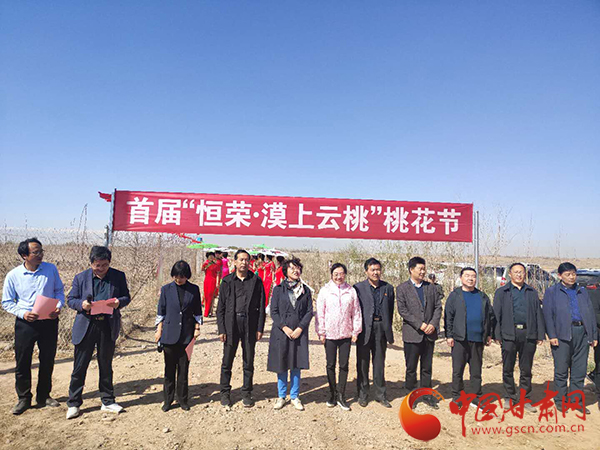 中國甘肅網4月25日訊(本網記者 張振國 文/圖)人間四月芳菲盡,大漠桃花始盛開。4月25日,騰格里沙漠邊緣、涼州大漠桃花即將開放之際,由甘肅恒榮綠洲治沙科技有限公司舉辦的首屆“恒榮·漠上云桃”桃花節(jié)在涼州區(qū)紅水河西該公司生態(tài)經濟林產業(yè)化經營試驗基地“恒榮桃園”開幕。