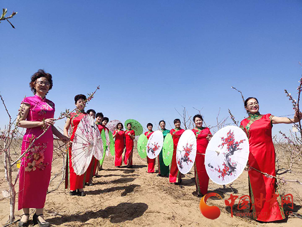 開幕式上,舉行了模特旗袍秀,賞花攝影等活動,參加活動的有關領導和志愿者徜徉桃林之間,藍天、大漠、桃花、春風,一張張美麗的笑臉在桃花叢中攝影留念,聆聽著大漠上桃樹成林的感人故事,一個人的桃花節(jié),也便成了千萬人的桃花匯!