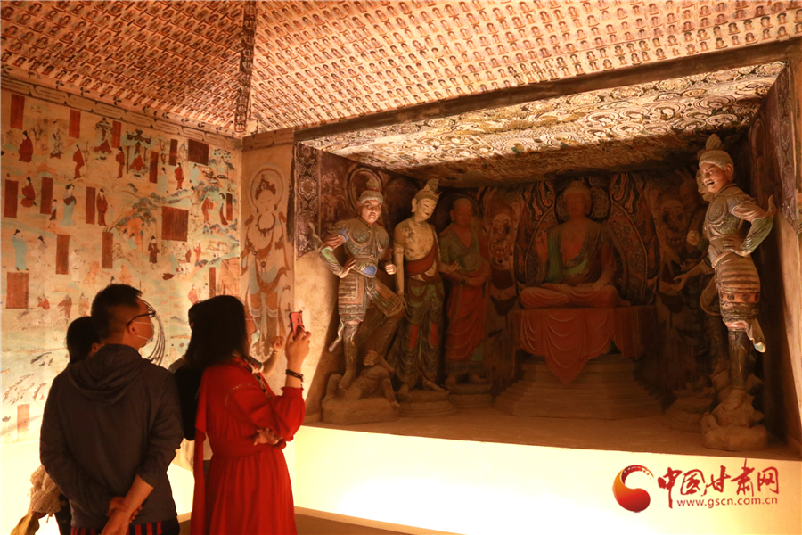 2020年5月18日,游客在甘肅省敦煌市博物館參觀文物展。