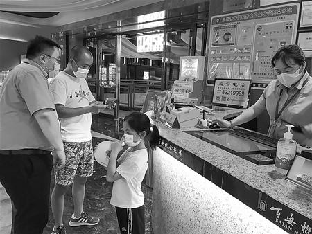 隨后,記者前往蘭州百安概念影城。影城入口處,工作人員提醒觀眾戴好口罩,對(duì)進(jìn)入影院的每個(gè)觀眾進(jìn)行體溫檢測(cè)和信息登記,未戴口罩和體溫在37.3℃以上者不得進(jìn)入。