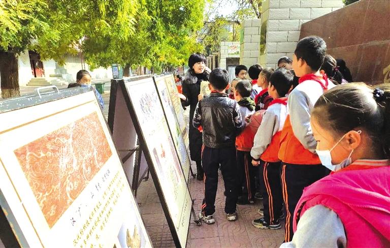 “以前認(rèn)為看文物,了解武威的歷史文化,需要進博物館才能看得到。沒想到,現(xiàn)在在家門口就看到了。”黃羊鎮(zhèn)農(nóng)民王文山對記者說道。為更好地發(fā)揮博物館的社會教育職能,拉近博物館與廣大人民群眾的距離,10月底,武威市雷臺漢文化博物館組織宣教部、保管部工作人員集中開展流動展覽“四進”活動。