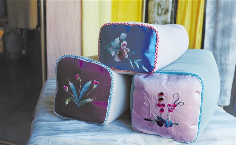 “農女手作”制作的非遺文創(chuàng)包括植物染絲巾、手工布包、刺繡小錢包、傳統(tǒng)頸椎保健枕、手工千層底老布鞋、手工刺繡壁掛、手工木梳、手工木飾品等。