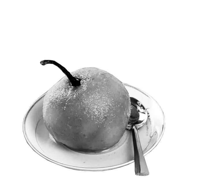 個把時辰后解凍好了,這時候才是享用軟兒梨的時候。用小碗小碟盛一只軟兒梨,用小匙挖了果肉吃。此時你就知道于右任先生說的“清香偏待化成泥”是什么意思了。解凍后的軟兒梨果肉已經完全變軟成泥,漿液滿滿,吃一口,那清香、那醇甜、那爽口、那冰涼……一入口打個小小冷顫,簡直太痛快了,使人頓感神清氣爽!你說,世間還有哪種水果可與之相比!