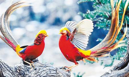 紅腹錦雞是我國的特有物種,也是國家二級保護動物,更于1993年當選為甘肅的省鳥。它身姿健美,羽色艷麗。清朝二品文官的補子上有它(排名在孔雀之前),齊白石的畫中有它,鳥類攝影愛好者的鏡頭下更是經(jīng)常見到它,有人甚至認為鳳凰的原型就是它。