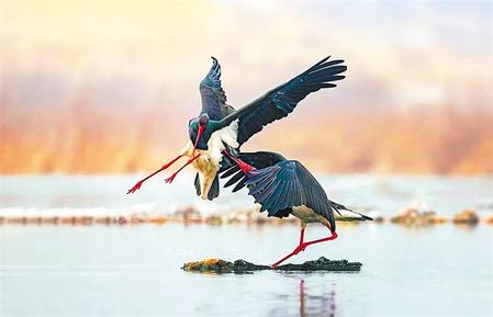 黑鸛不僅會捕魚,還是珍稀的保護動物。黑鸛有兩條大長腿,常在濕地邊緣的淺水區(qū)域活動覓食,因此是涉禽而不是游禽,有時它也到水邊的陸地上活動。黑鸛身披黑白二色,加上大紅色的眼圈、長嘴,色彩搭配既強烈又前衛(wèi)。它是我國體型最大的食魚水鳥之一,飛行遷徙能力很強,在歐、亞、非大陸都有分布,但近年來國內(nèi)的種群數(shù)量下降明顯,已成為國家一級保護動物,珍稀程度可以說不亞于大熊貓。