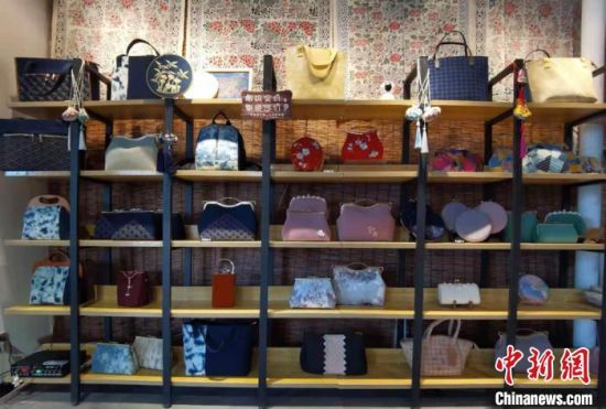 圖為祁輝純手工刺繡制作的時尚包展示?!堟?nbsp;攝