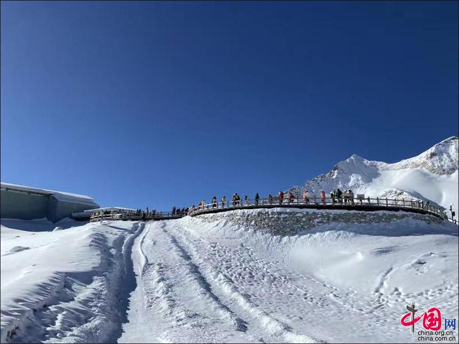 景區(qū)游覽紫外線強(qiáng),請做好防曬;欣賞雪景時,請佩戴墨鏡;索道上站海拔為4860米,請備好紅景天、氧氣,防止高原反應(yīng)。