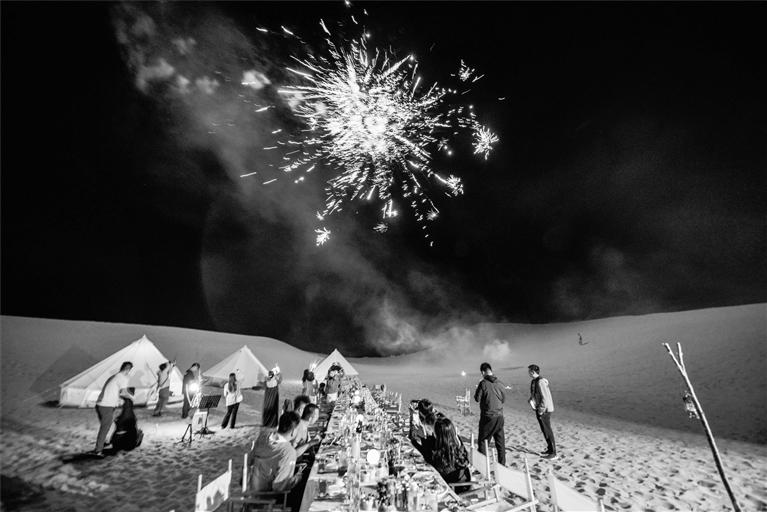 爬山、滑沙、越野摩托車……傍晚時分,敦煌鳴沙山下的印象戶外露營基地,在晚霞的映照下如夢似幻,色彩夢幻而賦有詩意。近日,敦煌鳴沙山下風(fēng)格迥異的戶外露營基地吸引眾多游客前來打卡,在沙漠上形成一道靚麗的風(fēng)景線。