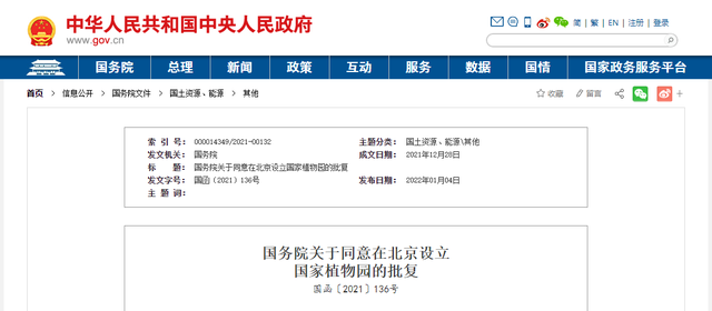 2021年12月28日,國(guó)務(wù)院公開(kāi)發(fā)布《關(guān)于同意在北京設(shè)立國(guó)家植物園的批復(fù)》(以下簡(jiǎn)稱(chēng)《批復(fù)》)。《批復(fù)》稱(chēng),國(guó)務(wù)院已同意在北京設(shè)立國(guó)家植物園,由國(guó)家林草局、住房城鄉(xiāng)建設(shè)部、中科院、北京市人民政府合作共建。