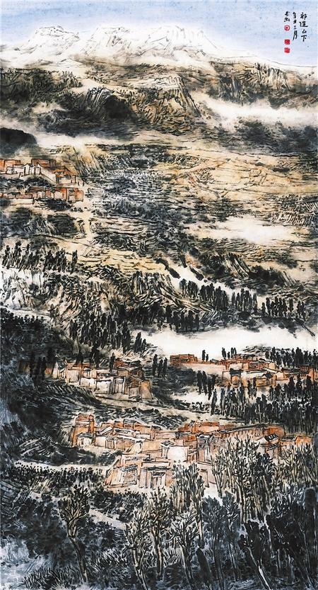 祁連山下(中國畫) 金長(zhǎng)虹