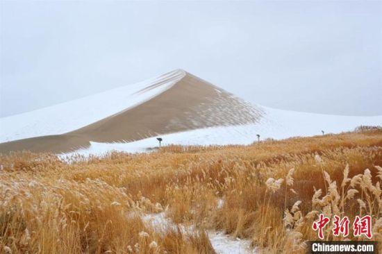 2月17日,甘肅敦煌迎來降雪天氣,大漠山川被皚皚白雪覆蓋,像一幅幅清秀淡雅的水墨山水畫。敦煌著名風(fēng)景區(qū)——鳴沙山月牙泉景區(qū)吸引游客前來觀賞難得一見的大漠雪景。這次降雪的特點(diǎn)是降雪量大,但氣溫并不是很低,游人盡情體驗(yàn)“沙雪交融”的絲路盛景。(王斌銀 張曉亮)
