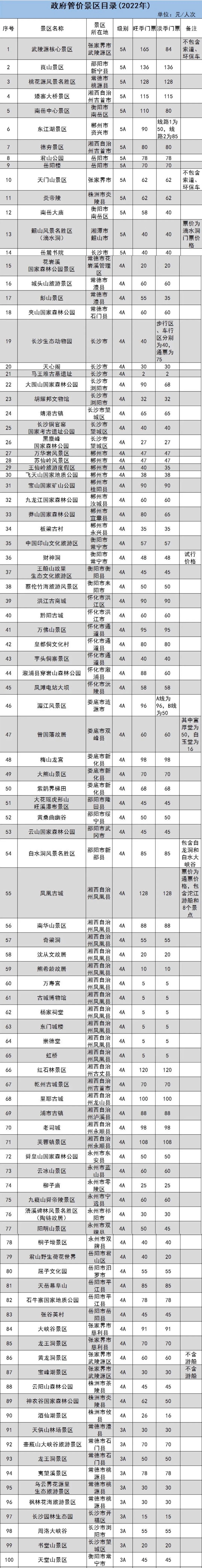 原標(biāo)題:湖南省政府管價(jià)景區(qū)2022年門票出爐 共181個(gè)