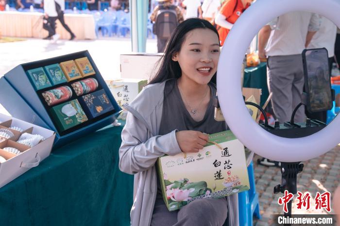 主播現(xiàn)場(chǎng)直播帶貨,銷售建蓮?!±钅宪?nbsp;攝