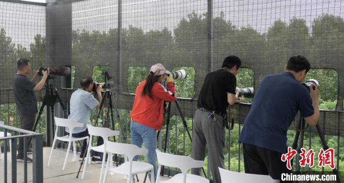 圖為鳥(niǎo)類攝影愛(ài)好者在觀鳥(niǎo)平臺(tái)上進(jìn)行拍攝。 桑秋華 攝