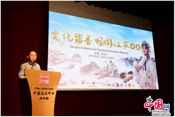 由江蘇省文化和旅游廳主辦、江蘇旅游(新馬)推廣中心協(xié)辦,新加坡中國文化中心、中國駐新加坡旅游辦事處及新加坡江蘇會全力支持的“文化留香·暢游江蘇”講座,于2022年7月23日(星期六)在新加坡中國文化中心4樓劇場舉行。江蘇省文化和旅游廳副廳長李川通過連線參與本次活動,新加坡旅游局助理署長(國際司)陳蕙敏、中國文化中心兼中國駐新加坡旅游辦事處主任肖江華、江蘇省駐新加坡經(jīng)貿(mào)代表處主任代表沈立國,以及來自新加坡文化藝術(shù)界、旅游界、商界、社團、新聞媒體及市民大眾等逾200名觀眾現(xiàn)場出席活動。