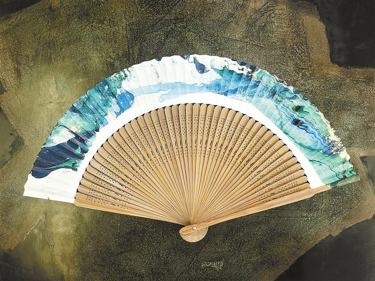 據(jù)劉志剛介紹,漆扇是使用漆藝中的“漂漆”技法,利用了漆不溶于水的特質(zhì),以點(diǎn)、甩、彈、劃等手法,在水面繪出圖案效果。這樣制作出的扇面,都是獨(dú)一無二的。