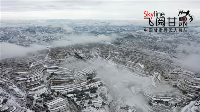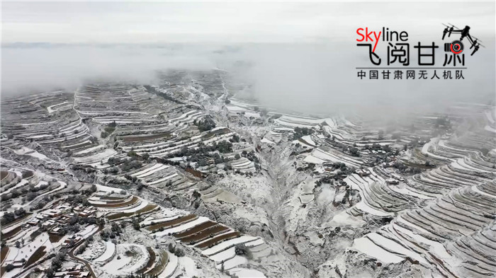 11月3日,定西境內(nèi)降雪,位于分水嶺一帶的高海拔地區(qū),梯田落雪,大地潔白。從空中俯瞰煙云縹緲,如走進(jìn)童話(huà)世界。(本網(wǎng)記者 宋芳科 通訊員王金生 )