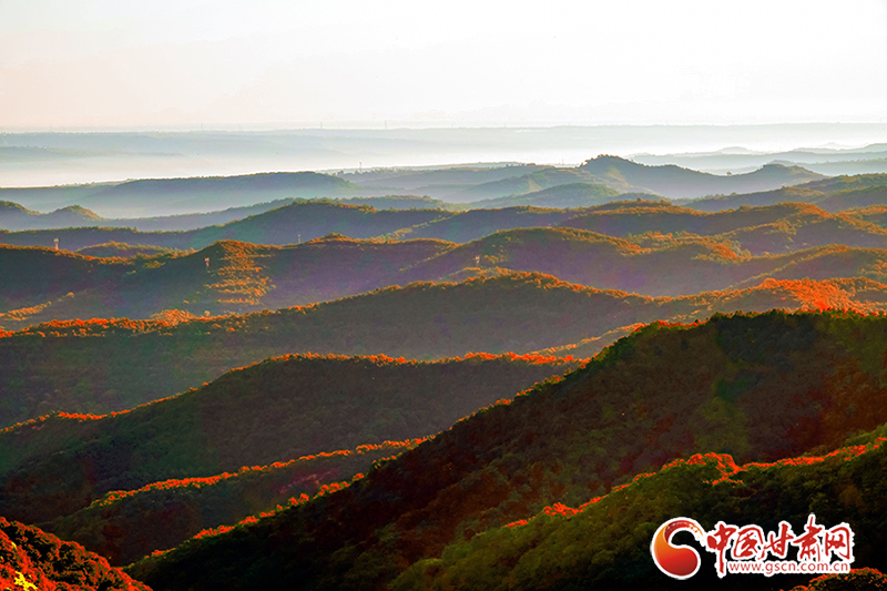 初冬時(shí)節(jié),在夕陽的映照下,平?jīng)鍪刑泼鄙绞〖?jí)森林公園云霧繚繞,山巒在云霧中若隱若現(xiàn)、如夢(mèng)如幻,呈現(xiàn)出仙境般美景。