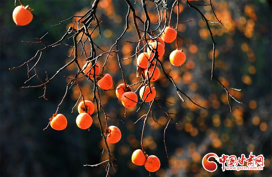 小雪時(shí)節(jié),在隴南康縣山里頭,柿子墜滿了枝椏。前山后坡,房前屋后,熟透的柿子如同燈籠遠(yuǎn)遠(yuǎn)的就能看到,黃黃的果實(shí)綴滿枝頭,煞是喜人。一幅“柿”覺盛宴讓人喜上眉梢。