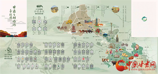 據(jù)了解,為了深入推進文旅市場復(fù)蘇百日攻堅行動,加強產(chǎn)品開發(fā)供給,促進鄉(xiāng)村旅游升溫,省文旅廳于12月13日發(fā)布了2022版甘肅鄉(xiāng)村旅游手繪圖。手繪圖以“相約隴原促振興·富了口袋富腦袋”為主題,對2022年創(chuàng)建的6個鄉(xiāng)村旅游示范縣,60個文旅振興鄉(xiāng)村樣板村開發(fā)設(shè)計了電子“二維碼”,設(shè)置了甘肅省鄉(xiāng)村旅游60條四季精品線路,幫助游客品味鄉(xiāng)村風(fēng)情、感知鄉(xiāng)村文化、體驗鄉(xiāng)村魅力,進一步展示甘肅鄉(xiāng)村旅游新形象、擴大鄉(xiāng)村旅游影響力,做亮“隴上鄉(xiāng)遇”鄉(xiāng)村旅游品牌,打造“隴上鄉(xiāng)遇”鄉(xiāng)村旅游全景圖。