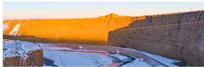 討賴河墩。嘉峪關(guān)南的討賴河盡頭之處,有一座高大的墩臺,原名討賴河墩,因是萬里長城西陲的第一座墩,又名“萬里長城第一墩”。該墩在嘉峪關(guān)之南,位于討賴河北岸高達(dá)82米的懸崖峭壁之上,距關(guān)城7.5千米。據(jù)《肅州志》記載:“討賴河墩,城(酒泉)西七十里,乃邊墻南,近討賴河盡頭之處。”該墩臺是肅州兵備道李涵于明嘉靖十八年(1539)至十九年(1540)監(jiān)筑。
