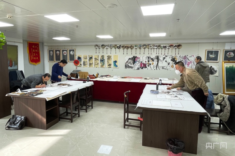 市民在美術館內進行書畫創(chuàng)作(央廣網(wǎng)發(fā) 慶陽市委宣傳部 供圖)