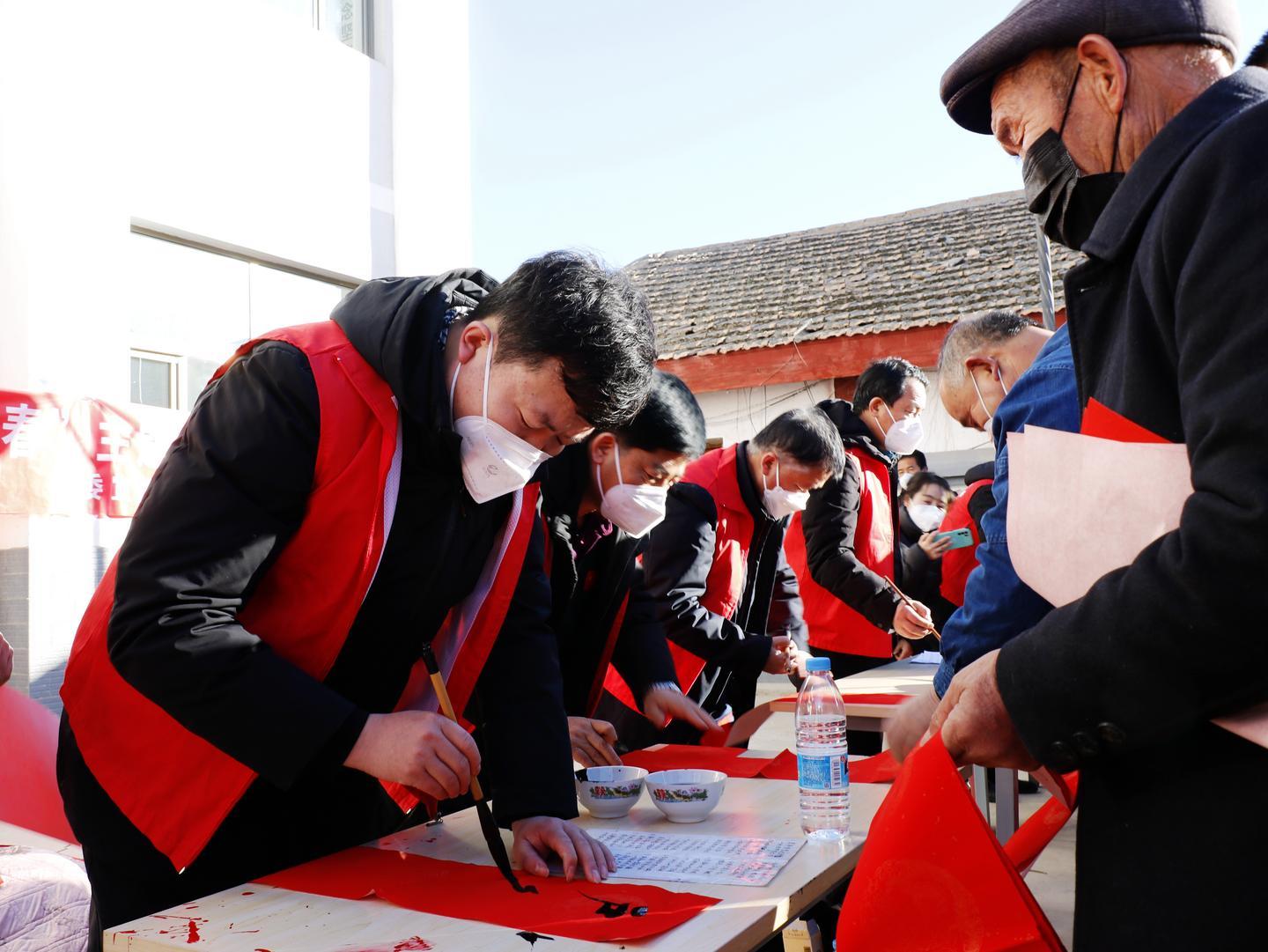 活動現(xiàn)場,來自涼州區(qū)書法家協(xié)會、涼州區(qū)書畫院的文化志愿者們揮毫潑墨,筆尖游走于墨色與紅紙之間,以筆寄意、以字傳情,片刻間,一張張象征平安吉祥的"福"字、一副副謳歌黨的二十大、內(nèi)容文明健康的紅色喜慶春聯(lián),寄托著滿滿的新春祝福撲面而來?,F(xiàn)場群眾拿到自己心儀的春聯(lián)和"福"字,喜悅之情溢于言表?;顒又?,涼州區(qū)婦女聯(lián)合會、共青團涼州區(qū)委等單位還開展了愛心捐贈、公益診療、義務理發(fā)等志愿服務活動,為困難群體送上溫暖和健康。