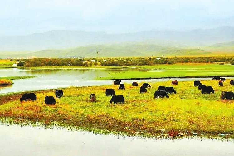 甘南的山、甘南的水,甘南的牛羊,構(gòu)成了一幅與城市工業(yè)化生活完全不同的畫面。因著海拔的緣故,就算陽光四起,甘南的遠(yuǎn)山上也都籠罩著一層青煙似的薄霧,這是中國畫的審美。人們偏愛云山霧海,偏愛影影綽綽的群山,要是群山之巔再有一些經(jīng)年不化的雪,那么此地就已經(jīng)擔(dān)得起一句“意境”了。