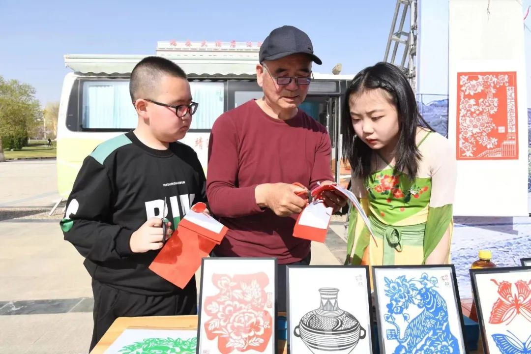 市級非遺保護(hù)傳承項(xiàng)目靖遠(yuǎn)剪紙傳承人王世義正在教小學(xué)生剪紙。喬麗霞 攝