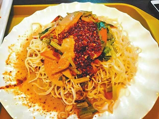 一碗標(biāo)準(zhǔn)的涼州涼面,必須是滿滿一碗,總要冒高點(diǎn)才夠分量。鹵汁分葷、素兩種。鹵子里有豬肉抑或牛肉片、土豆塊、豆腐、豆角、胡蘿卜、干白菜等,攪兩筷子,每一根面條都蘸上了鹵汁的感覺(jué),看起來(lái)就非常有食欲。食客們埋頭呼嚕呼嚕開(kāi)吃,相當(dāng)過(guò)癮。雖然面是涼的,但鹵是熱的,完全不需要擔(dān)心會(huì)燙嘴,面條很筋道,味道很濃郁!傳說(shuō)左宗棠多年征戰(zhàn),戰(zhàn)事吃緊,為解決將士吃飯方便的問(wèn)題,便想出冷面熱鹵的方法。吃涼州涼面,吃的是一種酸辣風(fēng)味,更是一種對(duì)小城難以割舍的情愫。