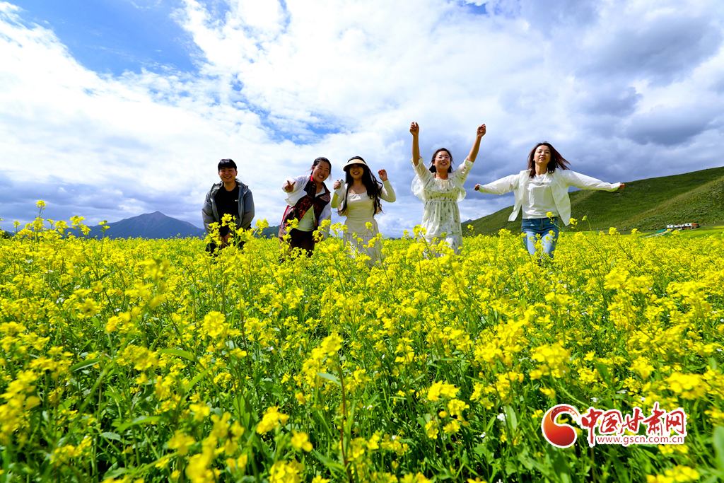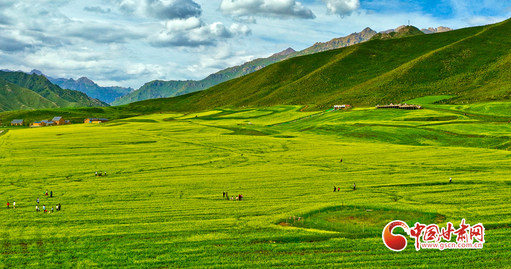連日來,甘肅省張掖市民樂縣萬畝油菜進入盛花期,金黃的油菜花海與草原綠野相連,在藍天白云的映襯下美不勝收,成為河西走廊地區(qū)的一道別致風景,吸引了眾多國內外游客前來觀光旅游。