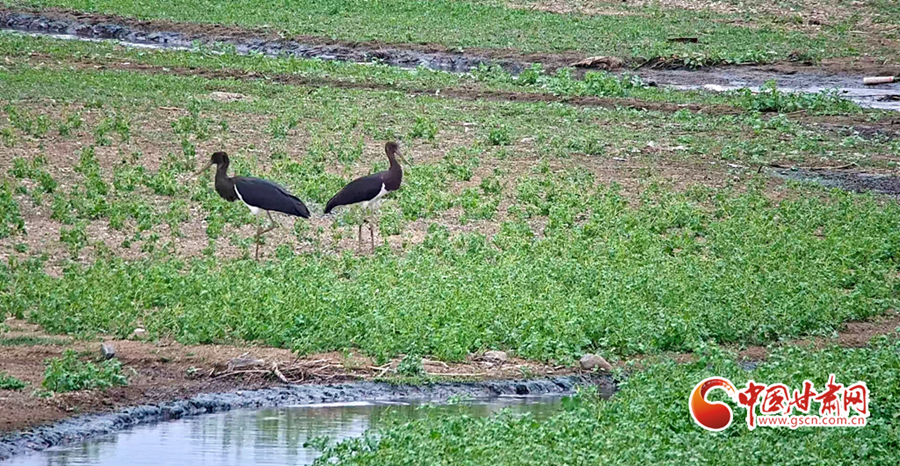 近日,山丹縣濕地保護(hù)站工作人員在開展候鳥監(jiān)測工作時發(fā)現(xiàn)14只被稱為“鳥中大熊貓”的黑鸛。