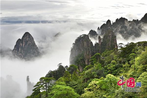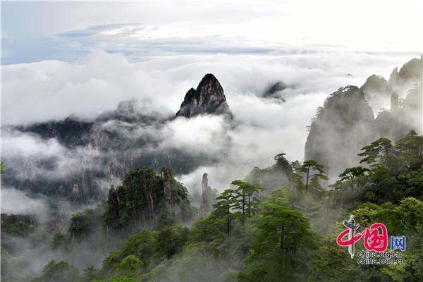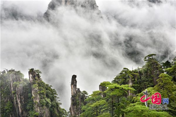8月31日,安徽黃山風景區(qū)一場秋雨后,云霧飄渺隨風而動,時而如輕紗在峽谷里翩翩起舞,嫵媚動人,時而又在千峰萬壑中驚濤駭浪,一瀉千里,與黃山奇松、怪石相映成趣,好似一幅幅流動的畫卷,給來山游客帶來一場盛大的視覺盛宴。