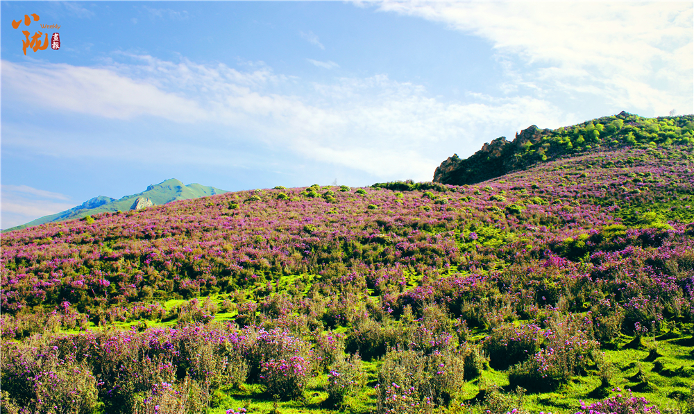 如火如荼綻放的紫色花朵是千里香杜鵑花,在當(dāng)?shù)赜直环Q為枇杷花,每年五、六月份,正值高山杜鵑怒放,形態(tài)各異,色彩斑斕,形成了壯觀、獨(dú)特的高山花海景觀。