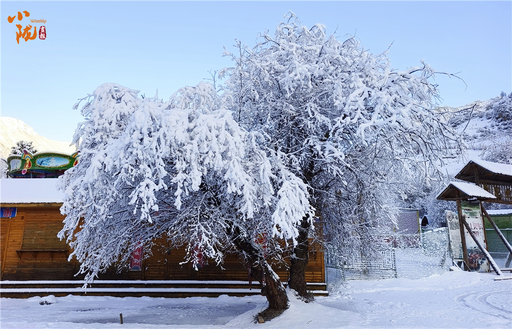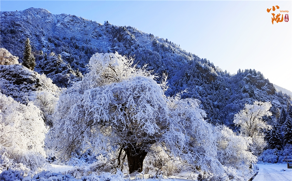 冰雪包裹的枝條仿佛玉樹銀花,千姿百態(tài),如同 “千樹萬樹梨花開” 。