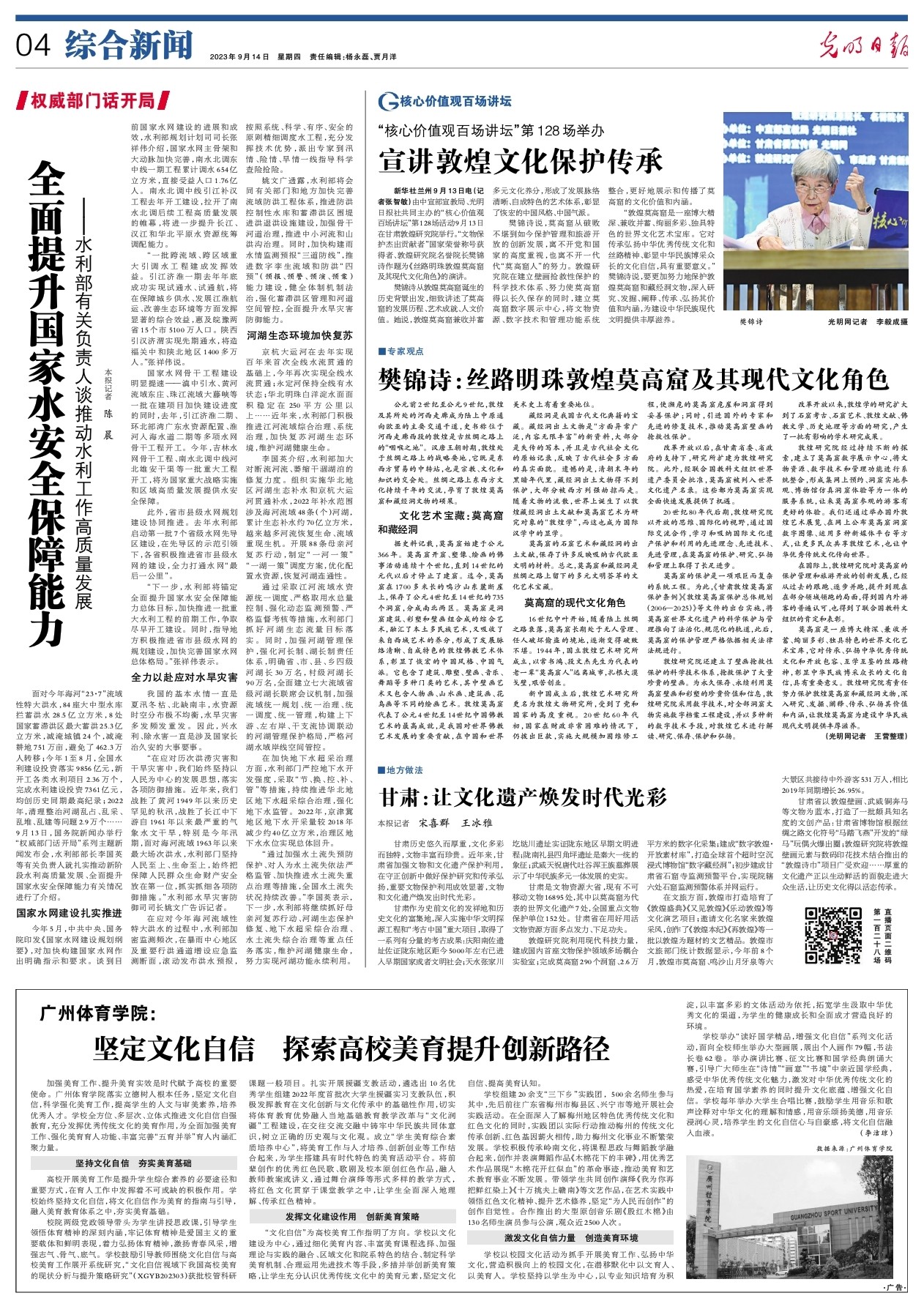 新華社蘭州9月13日電(記者 張智敏)由中宣部宣教局、光明日報社共同主辦的“核心價值觀百場講壇”第128場活動9月13日在甘肅敦煌研究院舉行。“文物保護杰出貢獻(xiàn)者”國家榮譽稱號獲得者、敦煌研究院名譽院長樊錦詩作題為《絲路明珠敦煌莫高窟及其現(xiàn)代文化角色》的演講。