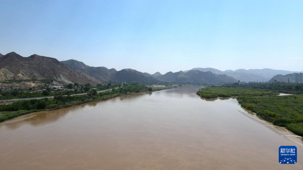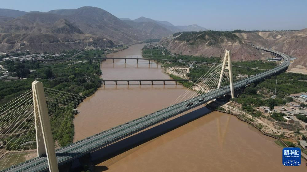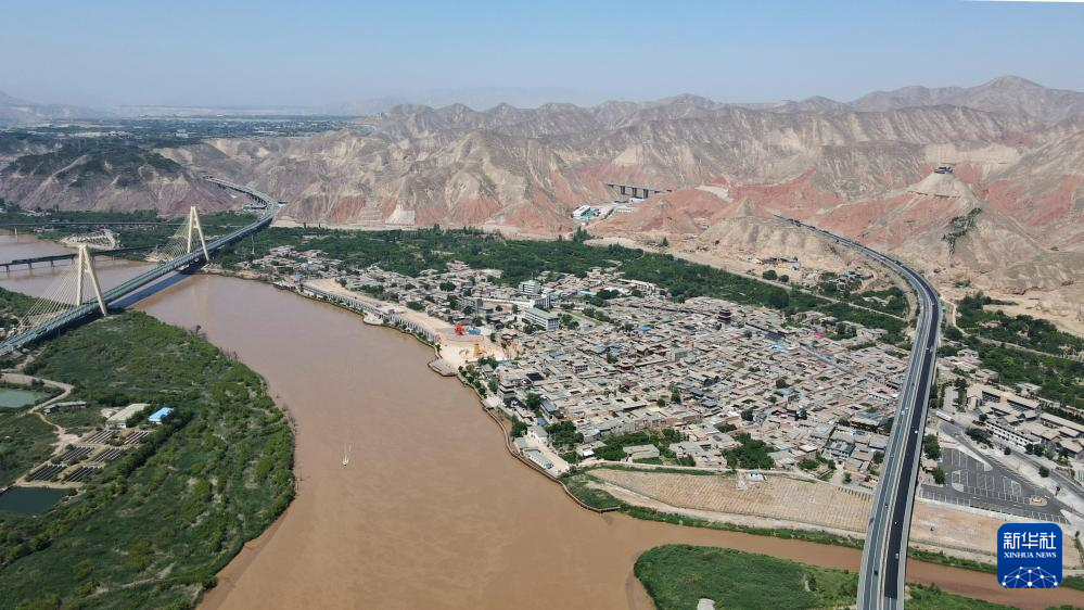 緊鄰甘肅省蘭州市西固區(qū)河口古鎮(zhèn)的高速公路大橋橫跨黃河(7月9日攝,無(wú)人機(jī)照片)。新華社記者 張可任 攝