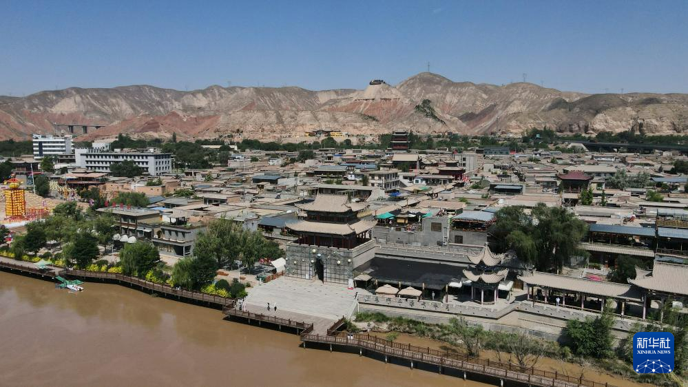 這是位于甘肅省蘭州市西固區(qū)黃河北岸的河口古鎮(zhèn)。河口古鎮(zhèn)歷史悠久、文化底蘊(yùn)深厚,現(xiàn)留存商賈碼頭、戰(zhàn)略要塞、交通樞紐等遺跡(7月9日攝,無(wú)人機(jī)照片)。新華社記者 張可任 攝