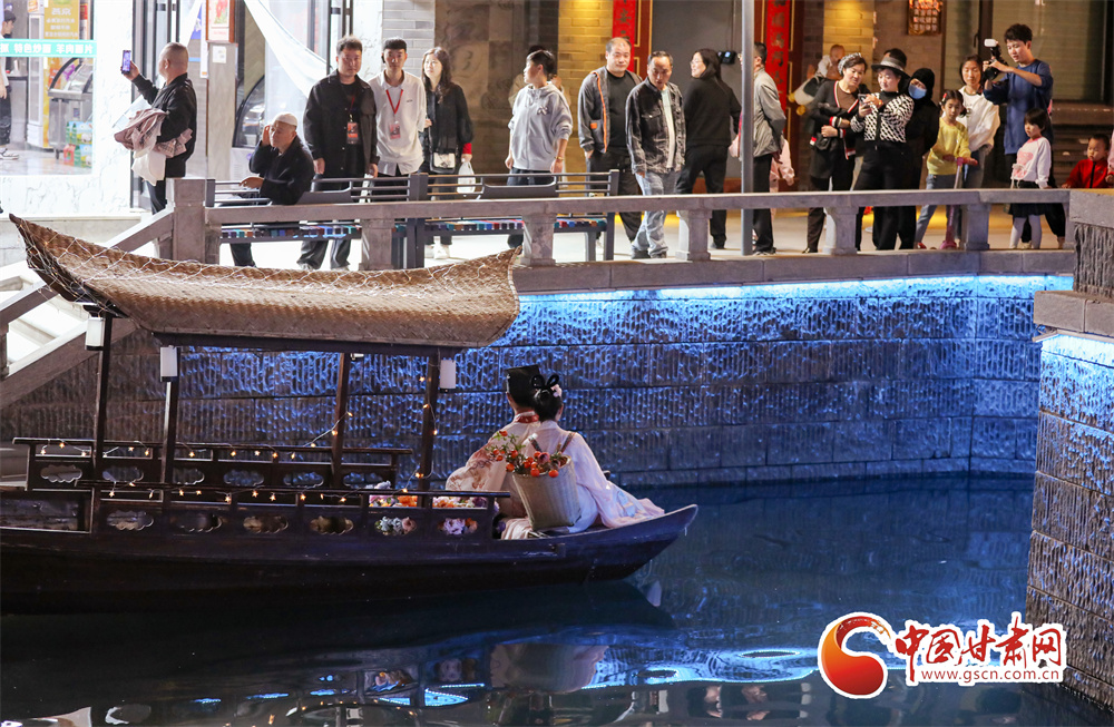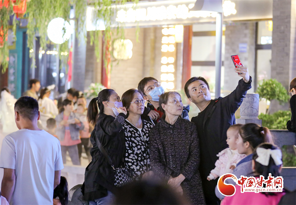 10月1日,國(guó)慶節(jié)期間,位于蘭州市七里河區(qū)的蘭州老街燈光璀璨,市民和游客紛紛前來賞景、游玩、品美食,用多種方式慶國(guó)慶、度假期。