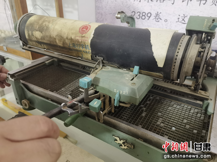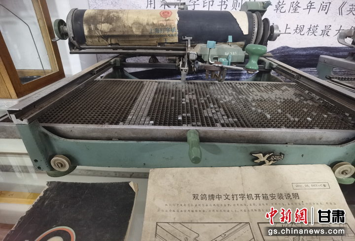 近日,甘肅省白銀市靖遠(yuǎn)縣大壩村民俗博物館吸引游人參觀。圖為老式打字機(jī)。劉玉桃 攝