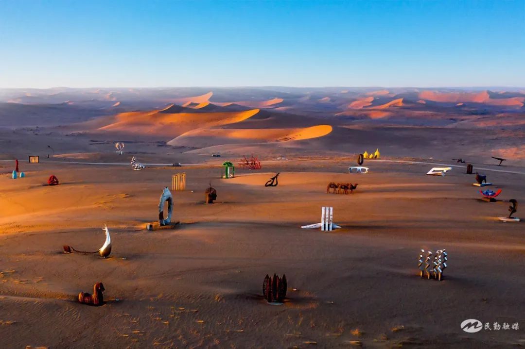 民勤蘇武沙漠景區(qū)絕對(duì)是網(wǎng)紅般的存在。刷屏各平臺(tái)它已成為???,沙漠雕塑?chē)?guó)際創(chuàng)作營(yíng)是大家最?lèi)?ài)的拍照打卡地,132座不同材質(zhì)、不同風(fēng)格的藝術(shù)佳作,如一顆顆璀璨明珠飄落瀚海,與藍(lán)天白云、金色大漠完美融合、相映成趣,超級(jí)出片。