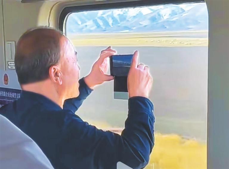 視頻中,一男子舉著手機(jī),透過車窗面對(duì)著藍(lán)天、雪山、草原情不自禁地抒情:祁連山下,各族兒女兩千多年來在華夏的文明史上書寫了鞏固民族大業(yè)、實(shí)現(xiàn)祖國(guó)統(tǒng)一、民族繁榮的恢弘歷史。朋友們,來張掖!感受兩千年的絲綢之路,感悟現(xiàn)代的動(dòng)車奔跑在祖國(guó)的大地上,讓中華在實(shí)現(xiàn)偉大復(fù)興的磅礴征程中恢弘勃發(fā)的新長(zhǎng)征、新歷史。